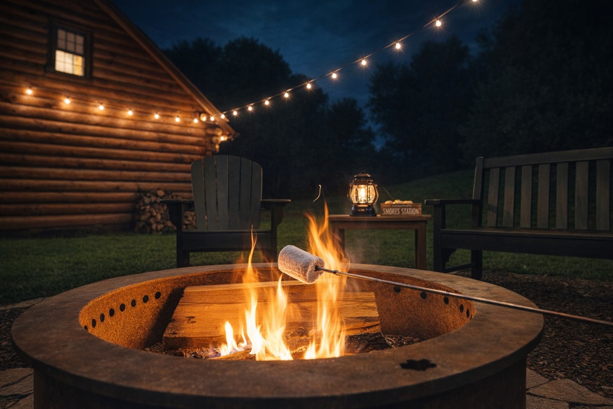 Toast the perfect marshmallow and unwind fireside beneath the starsâjust steps from your cozy log cabin escape.